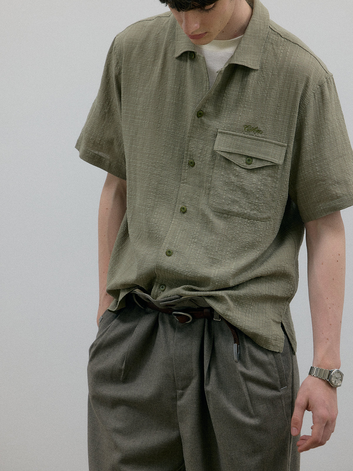 This is clothing that accompanies you, capturing unhurried moments in its details: the subtle folds from slipping your hands into pockets, the gentle creases at the waistband after a moment of idleness, and the layered cuffs and plackets that evoke the charm of a well-worn wardrobe. There’s elegance in the twist of a casually rolled T-shirt sleeve and even in the stitches of a tear that’s been lovingly repaired — details that hum with their own quiet rhythm.